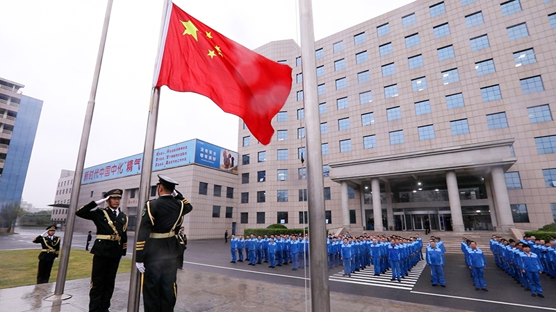 在和風(fēng)細雨中,伴隨著莊嚴的國歌,神圣的五星紅旗冉冉升起。所有在場的干部員工用不懼風(fēng)雨的堅毅和整齊和諧的自律向祖國母親致以最親切、最熱烈的敬意。